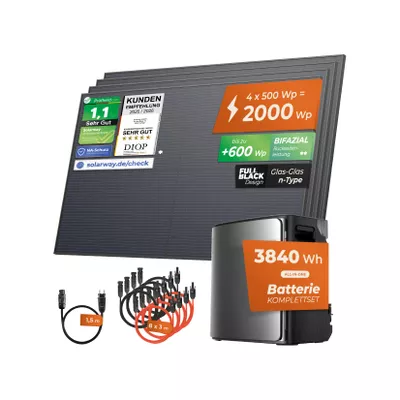 - 2000W + Ecoflow Ultra X Solarway® Balkonkraftwerk 2000Wp / 800W mit 3,8 kWh EcoFlow STREAM Ultr...